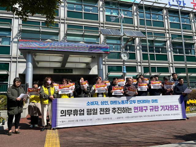 "마트 의무휴업 평일 변경 추진하는 연제구 규탄"