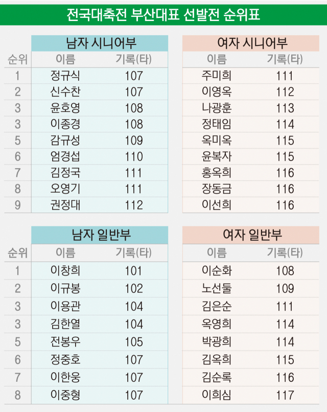 부산은 두 종목 우승을 바탕으로 총점 19점을 기록해 36점의 대구, 29점의 경남, 24점의 경기도에 이어 종합 4위를 차지했다.