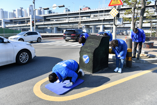 ‘큰절 선거운동’에 들어간 후보도 있다. 민주당 홍순헌 해운대갑 후보는 이날 오전 8시 해운대구 우동 민락교 입구에서 큰절로 1시간 동안 출근길 차량 운전자와 해운대 주민들에게 인사했다. 홍 후보는 매일 장소를 바꿔가며 큰절로 출근길 지지 호소를 이어갈 계획이다. 국민의힘 백종헌 금정 후보의 경우 출근 유세 시 수행 비서 2명이 “국민을 위해 날아다니겠다”는 의미로 빨간 망토를 입고 명함 등을 나눠주고 있다. 국민의힘 이헌승 부산진을 후보는 이날 지역을 돌며 쓰레기 줍기를 했다. 4선에 도전하지만 초심으로 돌아가 가장 낮은 곳에서부터 다시 시작하겠다는 의미로 풀이된다.