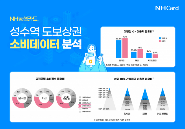 NH농협카드는 자체 개발한 가맹점 DNA를 활용해 성수역 주변 도보상권을 분석한 ‘소비트렌드 인사이트 보고서-서울 지하철 성수역 인근 상권 분석’을 발간했다고 25일 밝혔다.