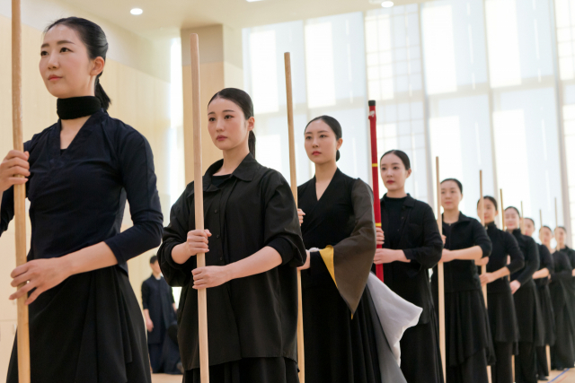 국립부산국악원 무용단이 오는 29~30일 국립부산국악원 연악당에서 2024 정기 공연 신작 ‘학(鶴)-상생과 평화의 영남춤 합설'을 선보인다. 사진은 무용단 연습 모습. 국립부산국악원 제공