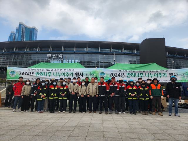 부산시설공단(이사장 이성림)은 제79회 식목일을 앞두고 지난달 29일 부산역 광장에서 ‘반려나무 나누어주기’ 행사를 가졌다.