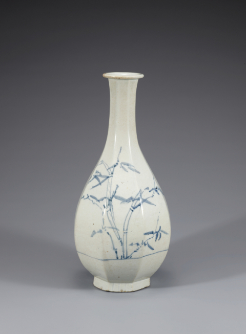 고 이건희 회장이 기증해 국보로 지정된 ‘백자 청화 대나무무늬 각병’. 부산박물관 제공