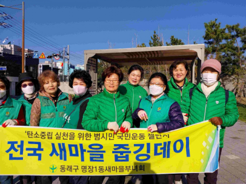 부산 동래구 명장1동(동장 문영심)은 지난 21일 명장1동 새마을부녀회(회장 김경자)에서 생활 속 탄소중립 실천을 위한 범시민 국민운동 챌린지‘전국 새마을 줍깅데이’를 실시했다고 밝혔다.