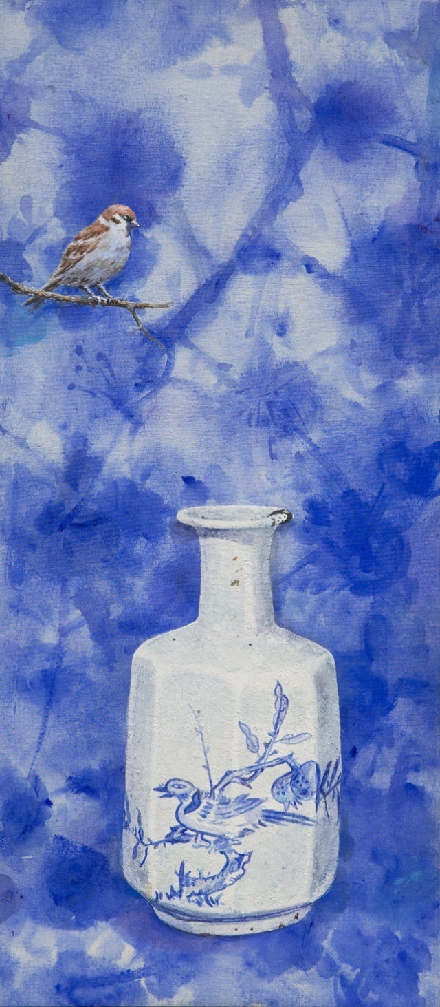 작가는 도자기의 미적 가능성을 탐색하고, 다완, 청화백자 같은 한국의 전통 도자기들을 그린다. 작품 재료는 전통 건축물에서 사용되는 재료에 착안하여, 석회와 모래와 해초를 삶은 접착제와 같은 특유의 질감을 드러내는 바탕재, 일명 ‘미끌도박’을 직접 만들어 사용하였다. 이를 통하여 자신만의 독특한 표현 방식으로 감각적 실재와 관념적 표상 사이에 대한 질문을 던진다. 특히, 작가는 부처 중 석불을 많이 표현하여 우리 속에 숨어있는 본질과 진정한 실체를 작품을 통해 생각하게 한다. 그 외에도 한국 고유의 유물이지만 굴곡진 역사 속에서 일본에 빼앗겨 버린 다완을 많이 표현하였고, 막사발과 풍경을 통하여 작가의 미적 가치관이 전통문화에 근간을 두고 있음을 시사하고 있다. ▶4월 22일까지 갤러리 이비나인.