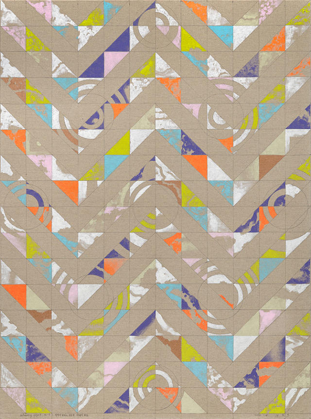 지난 2018년 12월 31일을 기점으로 ‘물감 소진 프로젝트(Exhausting Project)’라는 제목의 새 연작을 시작했다. 현재진행형인 이 연작은 지금 작가에게 남아있는 물감, 색연필 등 회구(繪具)들을 그의 여생에 걸쳐 모두 소진하는 프로젝트이다. 남아있는 회구를 색깔별로 골고루 소진하고자 화폭을 잘게 나누어 작업한 결과, 작품은 기하학적 도형의 모양을 띄며 김용익이 예술가로서 평생 추구해온 ‘저엔트로피(low entropy)적인’ 삶의 방식에 부합하는 형태를 드러낸다. 더불어 작가는 회구들을 최대한 오래 사용하고자 아껴 쓰기 때문에, 그의 회화 표면을 이루는 물감의 두께가 얇아 흐릿하거나 균일해 보이고, 때로는 붓터치가 그대로 드러나 가볍되 다소 거친 질감으로 표현되는 경향을 띤다. ▶4월 21일까지 국제갤러리 부산