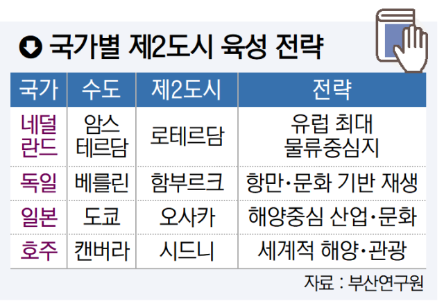 부산연구원은 부울경이 수도권과 차별화된 해양자원을 활용해 항만·물류, 조선·자동차, 관광 등 해양 중심 산업에서 글로벌 경쟁력을 갖춘 초광역 허브를 지향해야 한다고 제안했다. 수도권이 뉴욕, 런던, 파리, 도쿄 등의 글로벌 도시와 경쟁하는 동안 부울경은 상하이, 오사카, 로테르담처럼 물류와 해양·관광 중심지 역할을 하는 주요 국가의 제2 도시들과 경쟁해 글로벌 허브를 선점해야 한다는 것이다.