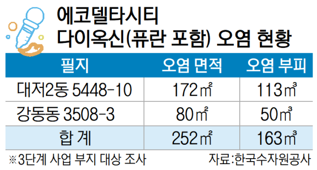 한편 2022년 에코델타시티 3단계 사업부지 1922지점을 전수조사한 결과, 290개 지점이 토양오염 우려 기준을 초과한 것으로 확인됐다. 수치가 많은 경우 기준치의 240배 이상 검출되기도 했다. 전반적으로 2만 7000㎡(8000여평)이 기름과 중금속들로 오염됐고 파내야 할 토사량도 1만 3000㎥ 규모였다. 당시 다이옥신에 대한 정밀 조사가 이뤄지지 않았고 이후 전문가 등이 다이옥신 오염 토양 조사를 요구했다. 민간협의체가 지난해 8월 조사에 착수해 지난해 12월 조사를 완료했다.