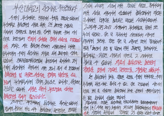 부산 금정구 장전동 부산대 캠퍼스 내에 붙은 대자보. 독자 제공