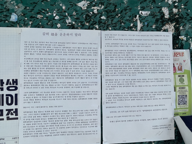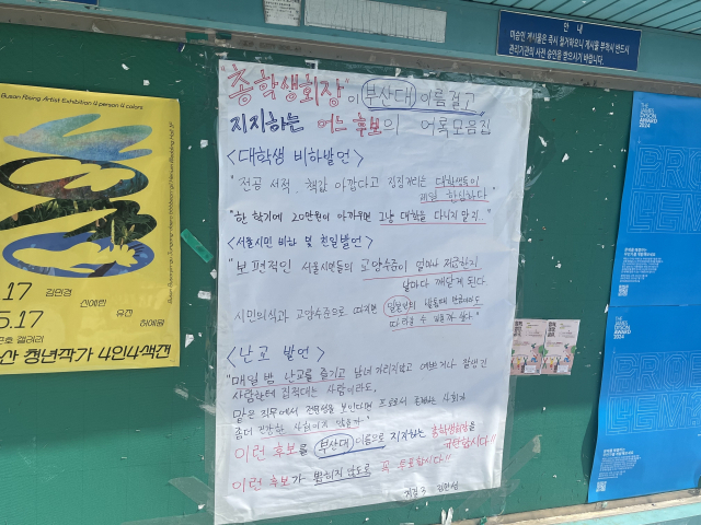 부산 금정구 장전동 부산대 캠퍼스 내에 붙은 대자보. 양보원 기자