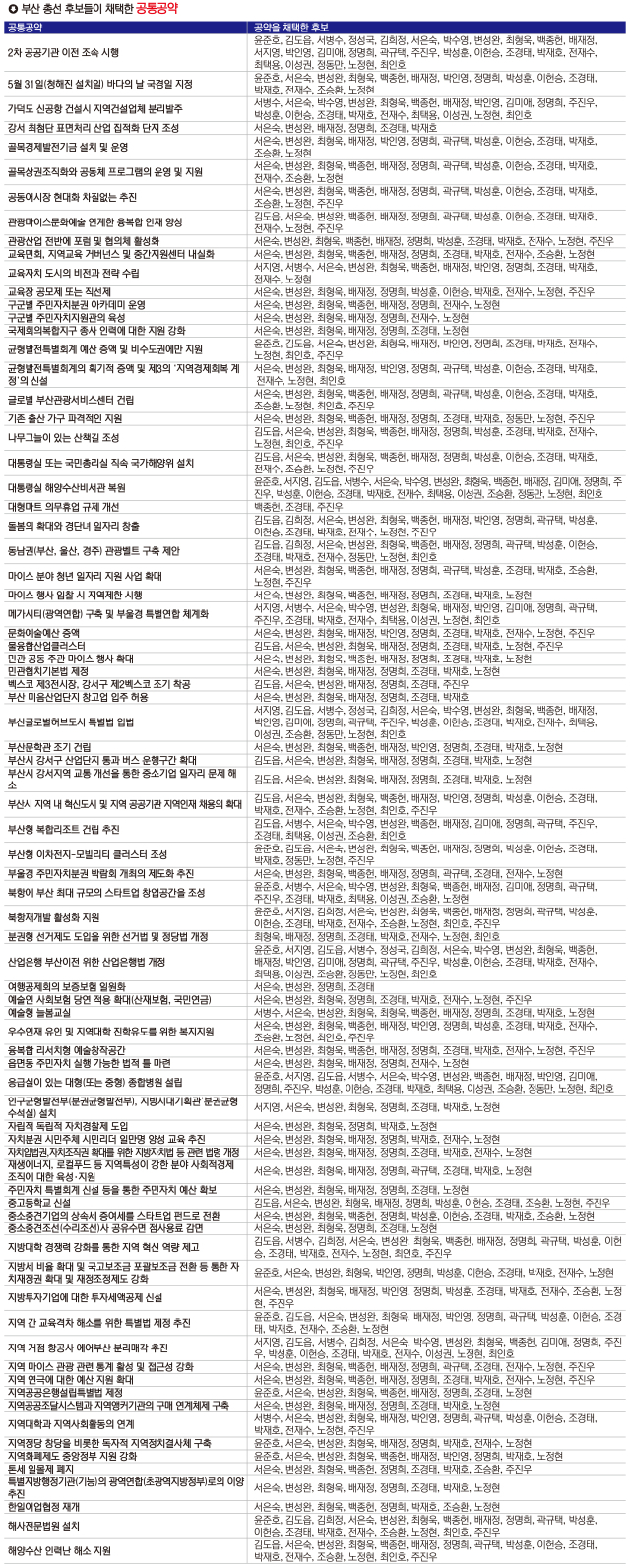 부산 후보 28명이 공약 채택 1위