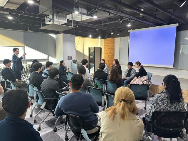 지난 12일 오후 부산 해운대구 부산 콘텐츠 코리아랩 5층 복합공간에서 열린 ‘할리우드를 가지 않고도 할리우드 음악 콘텐츠를 만들며 지속적인 수입을 창출하는 방법-지속 가능한 음악’ 세미나 모습. 김은영 기자 key66@