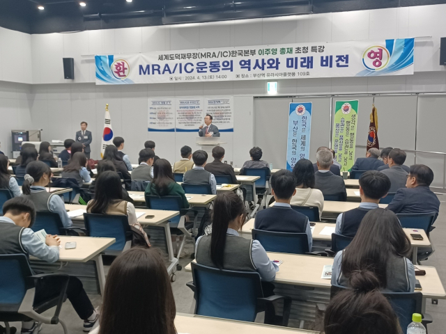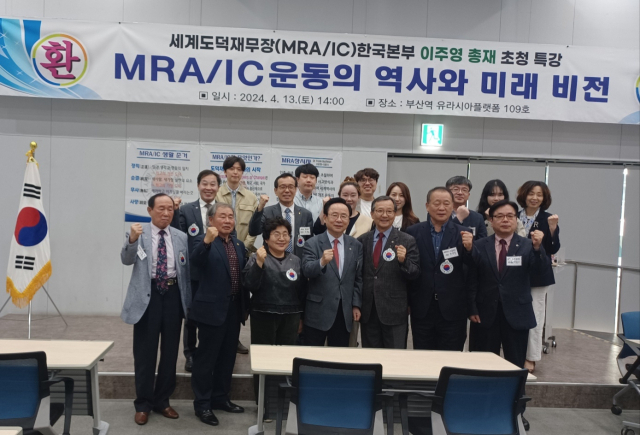 세계도덕재무장(MRA/IC)부산본부(대표 이태재)는 지난 13일 부산역 유라시아플랫폼 109호에서 한국본부 이주영 총재 초청 특강을 가졌다.