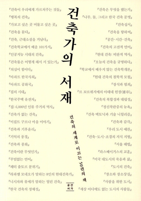 “이 건축물이 아름다운가라는 질문에는 쉽게 답할 수 있다. 하지만 ‘왜’라는 질문이 하나 더 붙으면 우리의 직관에 근거가 있는 것인지, 아니면 순간의 충동인지 헷갈리게 된다.” 통찰력이 돋보이는 이 이야기를 누가 했는지 알고 나서 깜짝 놀랐다. 그저 소설가로만 생각했던 알랭 드 보통이 <행복의 건축>에서 말한 내용이다. 작가 보통의 책은 건축을 새로운 관점에서 바라보게 만드는 특별한 힘을 지녔다. <건축가의 서재>는 대한건축학회 부산·울산·경남지회의 건축학자, 건축가 등 전문가가 엄선한 건축 필독서 50권을 소개한다. 이 책들을 교양, 주거, 건축가, 역사, 이론, 도시 등 여섯 개의 장으로 구분했다.