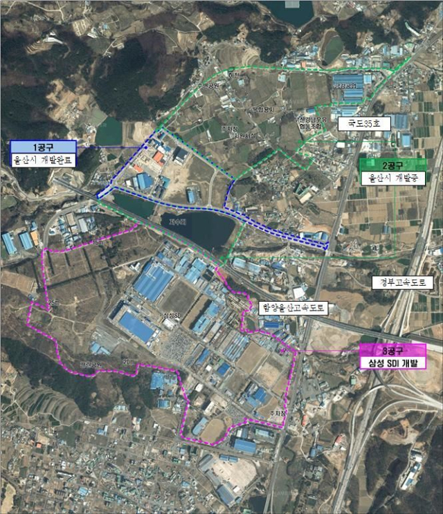 삼성SDI가 신형 이차전지 생산공장 부지와 기반 시설을 조성하는 울산 하이테크밸리 3공구 위치도. 울산시 제공