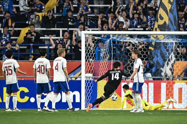 울산 HD 이동경(배번 14)이 17일 울산문수축구경기장에서 열린 2023-2024 아시아축구연맹(AFC) 챔피언스리그(ACL) 준결승 1차전 요코하마 F.마리노스와 경기에서 결승골을 터뜨리고 있다. 이날 1-0으로 승리한 울산은 오는 24일 원정 2차전에서도 합계 점수 우위를 지키면 이번 시즌 동아시아 최강 클럽 타이틀을 따내게 된다. 동아시아 결승 진출팀은 알아인(아랍에미리트)-알힐랄(사우디아라비아)의 대진으로 열리는 서아시아 준결승전 승자와 우승을 다툰다. AFP연합뉴스