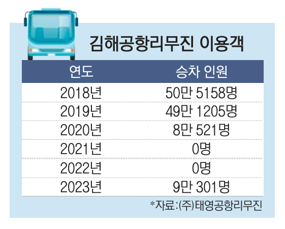 18일 김해공항 리무진 버스를 운행 중인 (주)태영공항리무진에 따르면 2018년 50만 5158명을 기록한 공항리무진 승차 인원은 해마다 감소세를 이어가다 지난해 9만 301명으로 뚝 떨어졌다. 5년 새 승객이 5분의 1로 줄면서 경영은 직격탄을 맞았다.