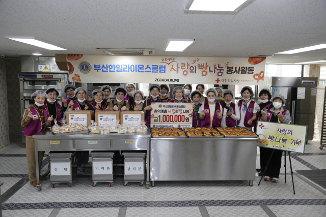 부산한일라이온스클럽(회장 노향무)은 지난 18일 대한적십자사 부산지사(회장 서정의) 희망나눔봉사센터에서 지역사회 취약계층을 위한 사랑의 빵 나눔 봉사활동을 했다.