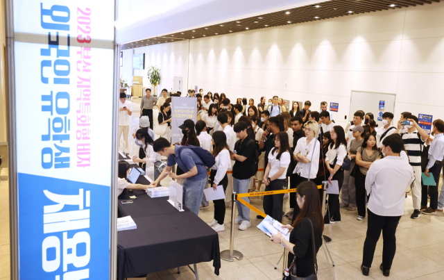 19일 부산에서 열린 ‘제59차 대한민국시도지사협의회 임시총회’에 참석한 16개 시도지사·부도지사들은 지역 맞춤형 외국인 정책 도입을 집중적으로 논의한 뒤 정부에 이와 관련한 범부처 차원의 전담 조직 신설을 건의할 예정이라고 밝혔다. 지난해 부산 동구 부산항국제전시컨벤션센터(BPEX)에서 열린 지역특화형 비자 유학생 채용박람회 모습. 부산일보DB