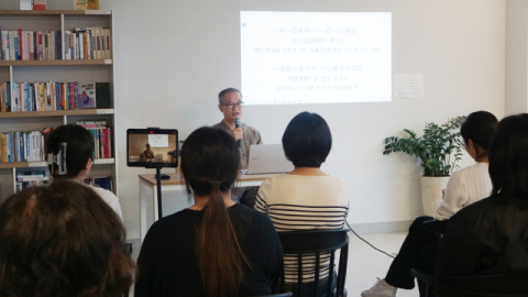 19일 산지니X공간에서 <불이문 (不二門)을 넘어 붓다의 세계로> 저자 이찬훈과의 만남 행사가 열리고 있다. 산지니 제공