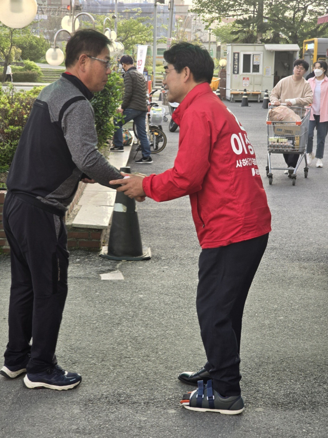 그의 부상은 총선 막판 더불어민주당의 입법 독주를 막아달라며 출퇴근 유세와 식사 시간을 제외하고 큰 절 호소에 나서면서 생긴 후유증이다. 선거를 8일 앞두고 이 당선인은 매일 9시간이 넘는 시간 동안 박스 한 장에 의지한 채 지역 주민들에게 절을 했다. 사하갑에서는 이 당선인과 그의 부산대 총학생회장 선배인 민주당 최인호 의원 간 대결이 성사돼 지역 정가의 시선이 쏠렸다. 그가 큰 절 유세에 돌입한 당시는 이 당선인이 각종 여론조사에서 최 의원에 오차범위 밖에서 밀린다는 결과가 잇따르는 상황이었다. 이와 관련, 이 당선인은 “사하 발전을 위해 제가 갖고 있는 장점을 최대한 알리며 지지를 호소하고 싶은 마음뿐이었다”며 당시를 회상했다.