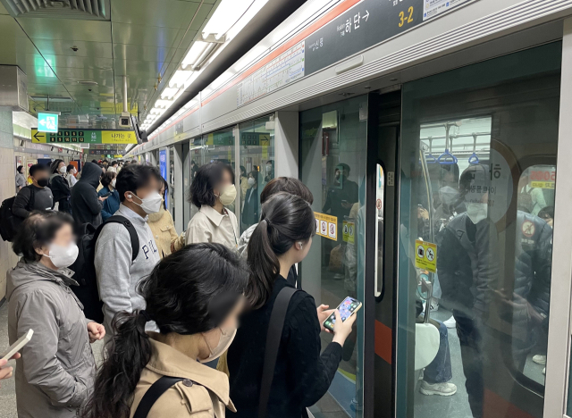 내달 K패스 시행을 앞두고 있지만 동백패스와의 연계가 되지 않아 이용자들의 혼선이 커지고 있다. 부산 도시철도 1호선 출근길 모습. 부산일보DB