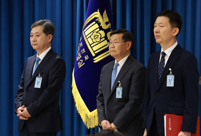 우주항공청 초대 청장에 내정된 윤영빈 서울대 항공우주공학과 교수(왼쪽부터)와 존 리 우주항공임무본부장 내정자, 노경원 우주항공청 차장 내정자가 24일 서울 용산 대통령실 청사에서 열린 인사브리핑에 참석했다. 연합뉴스