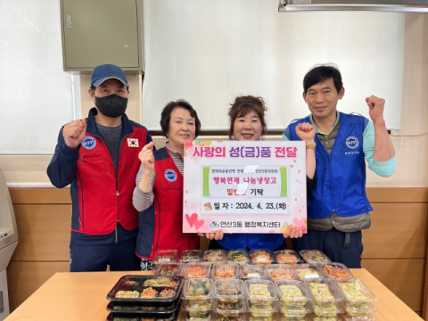 이 날 후원 받은 밑반찬은 동 행복연제 나눔냉장고를 통해 홀로 어르신 등 저소득 취약계층에 배부할 예정이다.