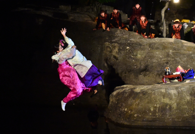 실경역사뮤지컬 ‘의기논개’ 공연 모습. 3일부터 5일까지 매일 오후 8시 의암 수상특설무대에서 펼쳐진다. 진주시 제공
