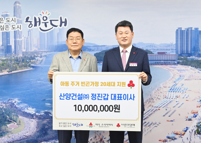 이날 전달식에는 산양건설(주) 정진갑 대표이사와 김성수 해운대구청장, 부산사랑의열매 박선욱 사무처장이 참석했다.