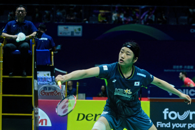 지난달 30일 세계단체선수권대회 덴마크전에 출전한 안세영. AFP연합뉴스