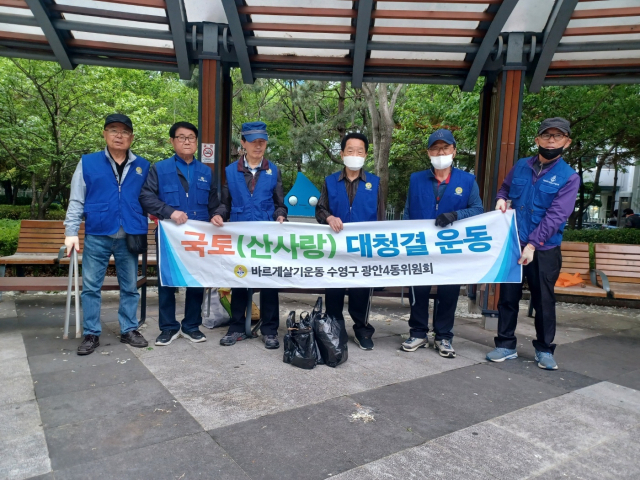 부산 수영구 바르게살기광안4동위원회(위원장 정종백)는 지난달 30일 간선도로 등에서 쓰레기 줍기와 교통질서 지키기 홍보 활동을 펼쳤다.