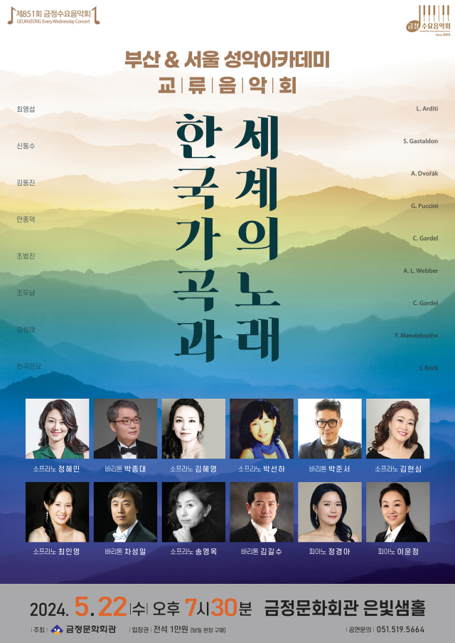 제851회 금정수요음악회 ‘한국 가곡과 세계의 노래-부산 서울 성악아카데미 교류 연주회’ 포스터.