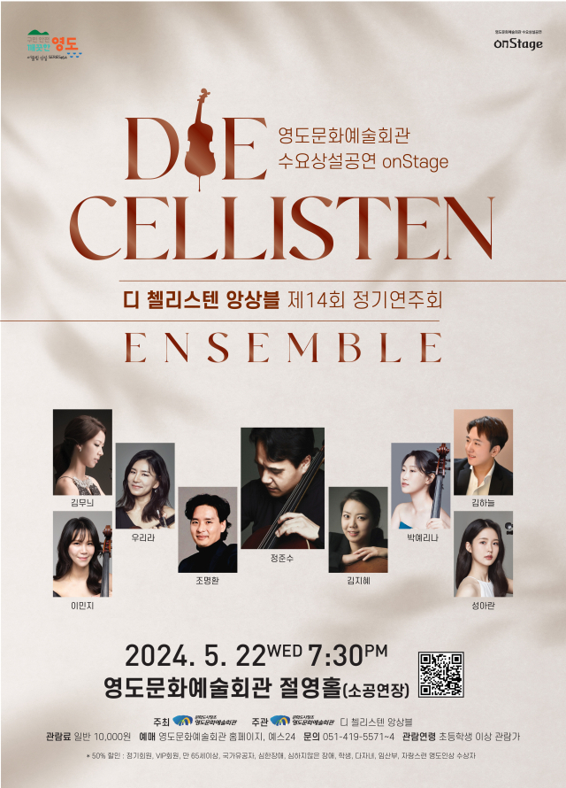 ◆영도문화예술회관 수요상설공연 onStage ‘디 첼리스텐 앙상블 제14회 정기 연주회’ [영도문화예술회관 절영홀]