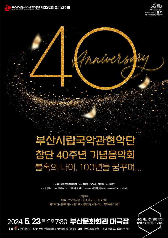 부산시립국악관현악단 제225회 정기 연주회 창단 40주년 기념 음악회 ‘불혹의 나이, 100년을 꿈꾸며...’ 포스터.