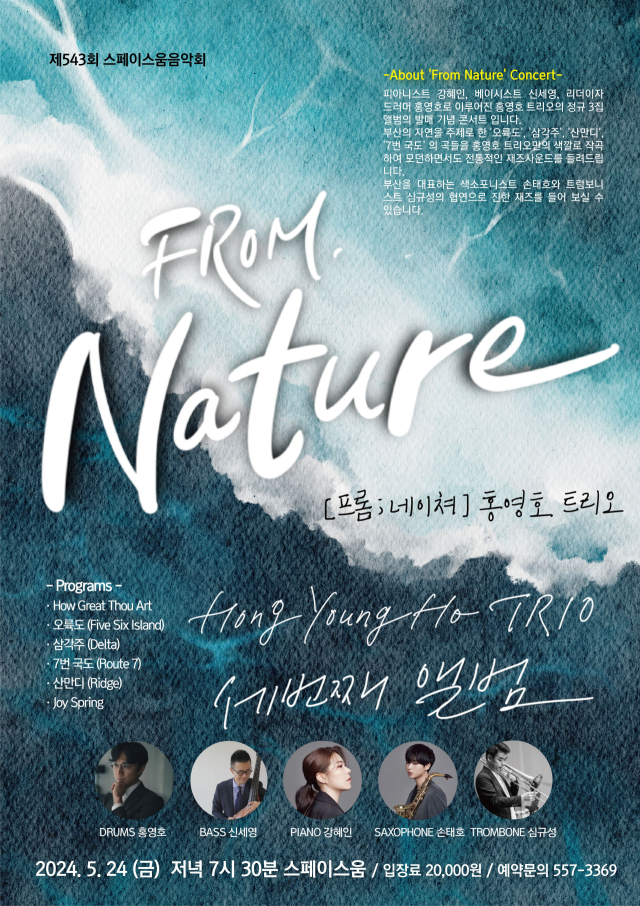 제543회 스페이스 움 음악회 ‘홍영호 트리오 정규 3집 <From Nature> 앨범 발매 기념 부산소공연장 투어 콘서트 포스터.