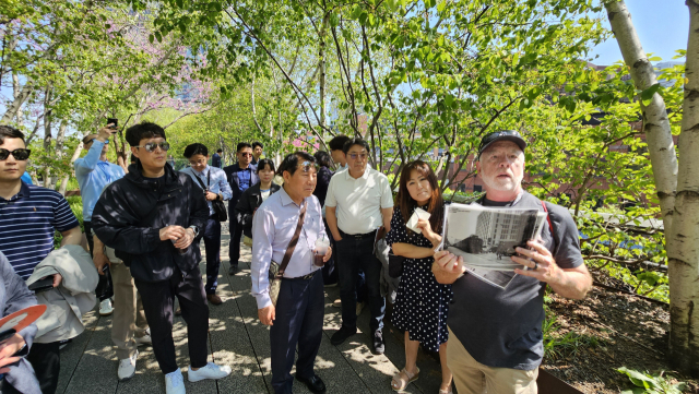 낙동강협의회가 고가철로를 공원으로 조성한 미국 뉴욕의 하이라인을 시찰하고 있다.