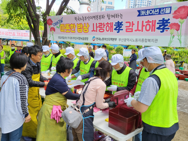 한국노총 부산본부, 어버이날 점심 선물