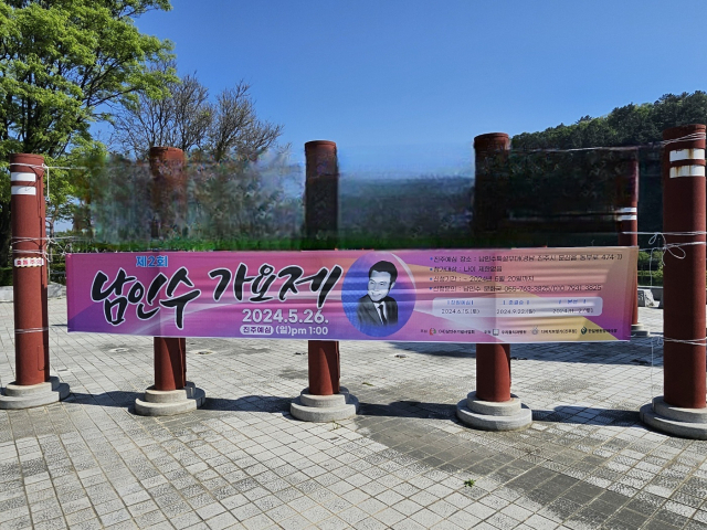 (사)남인수기념사업회는 최근 현수막을 걸고 오는 26일 제2회 남인수가요제 예심을 치른다고 밝혔다. 예심 장소는 문산읍 특설무대로 사유지다.