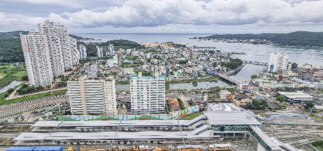부산시 기장군 일광읍 옛 한국유리 부지와 일광역, 일광해수욕장 일대 전경. 부산일보DB