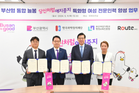 부산시(시장 박형준)는 오늘(9일) 오후 3시 30분 시청 국제의전실에서 한국과학창의재단, 부산여성가족과평생교육진흥원, ㈜루트아이앤씨와 함께 「부산형 통합 늘봄 '당신처럼 애지중지' 특화형 여성 전문인력 양성 업무협약」을 체결한다고 밝혔다.