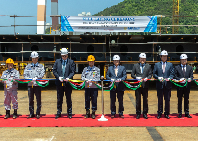 9일 오전 부산 사하구 대선조선 다대조선소에서 ‘팬스타 미라클호’ 용골 거치식이 열렸다. 팬스타 미라클호는 국내 선사가 만드는 첫 호화 크루즈페리다. 팬스타그룹 제공