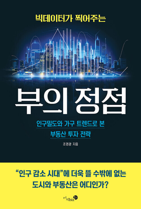 부동산은 인구만으로는 설명할 수 없다. 이 책은 ‘인구밀도’와 ‘가구 트렌드’라는 두 가지 분석을 통해 부동산의 미래를 적나라하게 보여 준다. 인구 소멸의 공포가 확산될수록 인구가 쏠리는 도시와 그렇지 않은 도시의 집값 차이는 더욱 크게 벌어진다. 인구밀도가 높은 서울이나 부산 같은 도시는 집값이 오를 수 밖에 없다니…. 조영광 지음/미지/292쪽/1만 9800원.