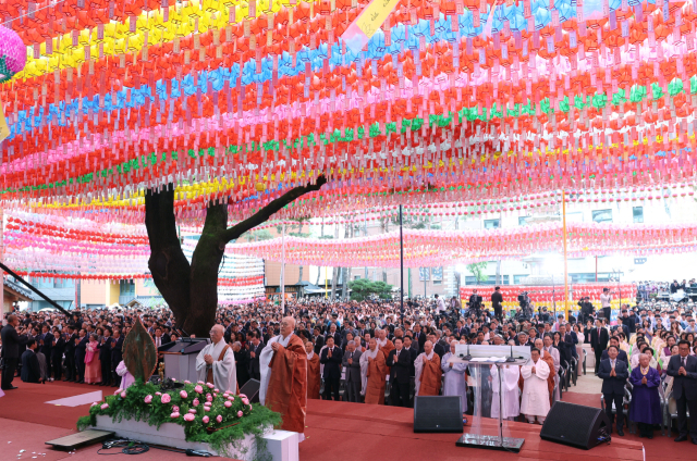 15일 서울 종로구 조계사에서 불기 2568년 부처님오신날 봉축법요식이 열리고 있다. 연합뉴스