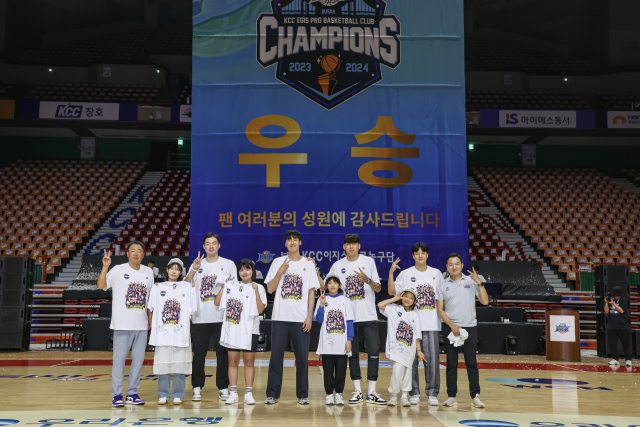15일 부산 사직실내체육관에서 부산 KCC 이지스 프로농구단이 23-24시즌 챔프전 우승 기념 팬페스타 행사가 열려 허웅, 최준용, 송교창, 이승현, 전창진 감독이 팬들과 춤을 추며 즐거운 시간을 보내고 있다.