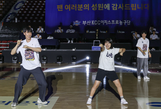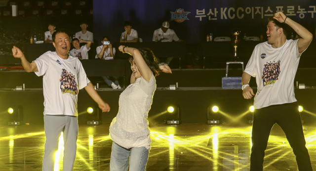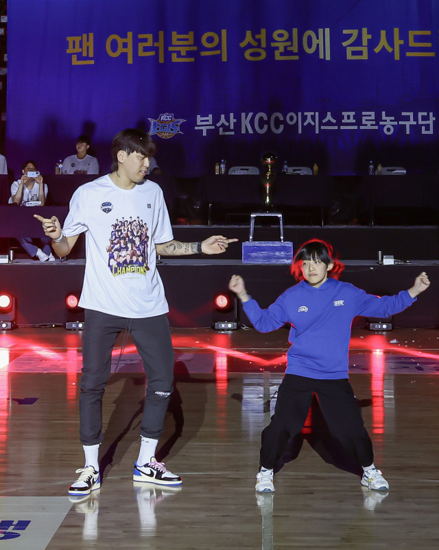 [포토뉴스] 부산 KCC 이지스, 팬들과 댄스타임…우승 기념 팬페스타