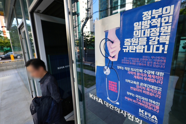 정부가 16일 의대 증원·배분을 멈춰달라는 의료계의 집행정지 신청이 항고심에서 받아들여지지 않은 데 대해 "사법부의 현명한 판단에 깊이 감사하다"는 입장을 밝혔다. 한덕수 국무총리는 이날 서울고등법원의 집행정지 신청 각하·기각 직후 대국민담화를 열어 "정부는 사법부의 현명한 결정에 힘입어 더 이상의 혼란이 없도록 2025학년도 대학입시 관련 절차를 신속히 마무리하겠다"고 밝혔다. 사진은 이날 오후 서울 용산구 대한의사협회. 연합뉴스