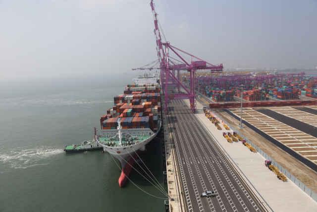 컨테이너 화물 하역작업이 이뤄지고 있는 인천신항. IPA 제공