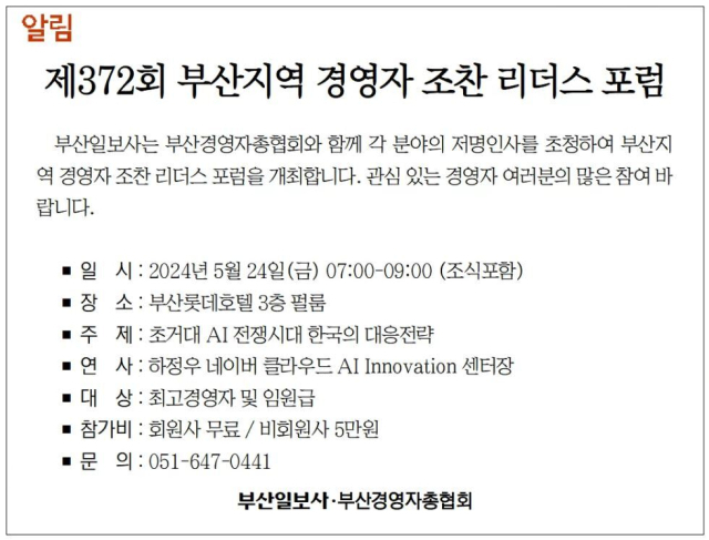[알림] 제372회 부산지역 경영자 조찬 리더스 포럼