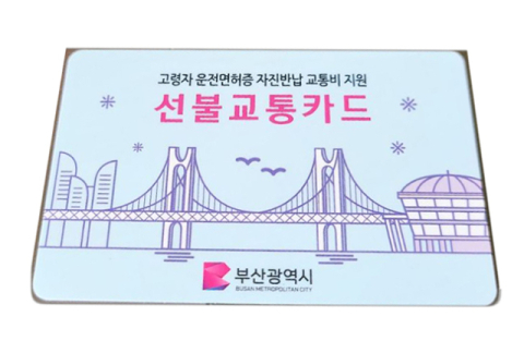 부산시는 만 65세 이상 어르신이 운전면허증을 자진 반납하면 선불교통카드를 발급하고 있다.